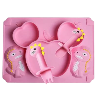 Dinosaur Silicone Baby Plate Spoon Fork Set Silicon Plate Set Baby